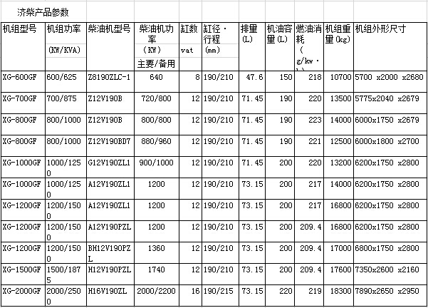 濟柴柴油發電機組特點: ●大功率柴油機行業中****國家質量金獎產品 ●結構緊湊、功率大、性能穩定****、抗磨耐用 ●發電機組技術成熟、零配件易購、歷史悠久,配套適應性強 12VB系列柴油機是一種用途廣泛、性能優良的高速大功率柴油機,該機一九八六年獲“國優金質獎”、一九九四年獲“全國用戶滿意產品稱號”。該機經過多年來的研制、開發、不斷地吸取現代內燃機領域中卓有成效的科技成果,使其具有技術經濟指標****、結構緊湊、起動迅速、易于操作、維修方便、能適應各種惡劣環境條件下作業等特點。 190系列8V柴油發電機組是以190系列8V柴油機為動力,選配國內外****發電機所生產的柴油發電機組,功率范圍230~500kW,并可由兩臺或兩臺以上機組組成電站。 190系列8V柴油機是一種用途廣泛、性能優良的高速大功率柴油機,功率范圍390~588kW。該機經過多年來的研制、開發、不斷地吸取現代內燃機領域中卓有成效的科技成果,使其具有技術經濟指標****、結構緊湊、起動迅速、易于操作、維修方便、能適應各種惡劣環境條件下作業等特點。 直列190系列柴油發電機組是以直列型柴油機為動力,選配國內外****發電機所生產的柴油發電機組,功率范圍160~600kW,并可由兩臺或兩臺以上機組組成電站。直列190系列柴油機是我公司主要針對船用柴油機市場而開發出來的,目前已廣泛應用于陸地發電,分為四直、六直和八直三大系列產品,功率范圍160~720kW,其主要特點是經濟性能指標****,體積小,結構緊湊,功率大,操作維修簡單,動力性及****性好,****限度地保持了與190系列柴油機的系列化、通用化,在目前國內同類柴油機中居****水平。 2000系列柴油機是在Z12V190B型柴油機的基礎上,圍繞提高柴油機****性、經濟性和動力性,解決三漏和外觀質量,方便維修等方面,進行了較大改進,更好地滿足各種石油鉆機、發電機組、工程機械對動力的要求。 3000系列柴油機是我公司為滿足日益發展的石油工業的需求,提高我國鉆井裝備的****性、****性而研制開發的新一代柴油機。該型柴油機是在我公司6000系列柴油機的基礎上,吸收借鑒國外柴油機****結構與技術而開發的。其動力性、經濟性指標均有大幅提高,主要性能指標已達到或接近當今國際****水平。